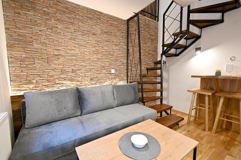 This apartment consists of 1 living room, 1 separate bedroom and 1 bathroom with a bath or a shower. The kitchen comes with a stovetop, a refrigerator and kitchenware. The apartment features parquet floors, a seating area with a flat-screen TV, a wardrobe, a sofa, as well as heating. The unit offers 2 beds.