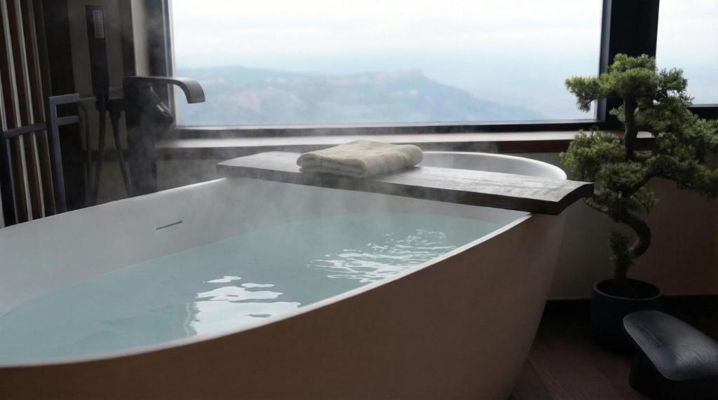 Guests will have a special experience as this apartment features a hot tub and a fireplace. Featuring a private entrance, this apartment consists of 1 living room, 1 separate bedroom and 1 bathroom with a walk-in shower and a bidet. The apartment's kitchen, which features a refrigerator and an oven, is available for cooking and storing food. The apartment is furnished with a desk and a seating area and provides a mini-bar, a tea and coffee maker and mountain views. The unit offers 3 beds.
