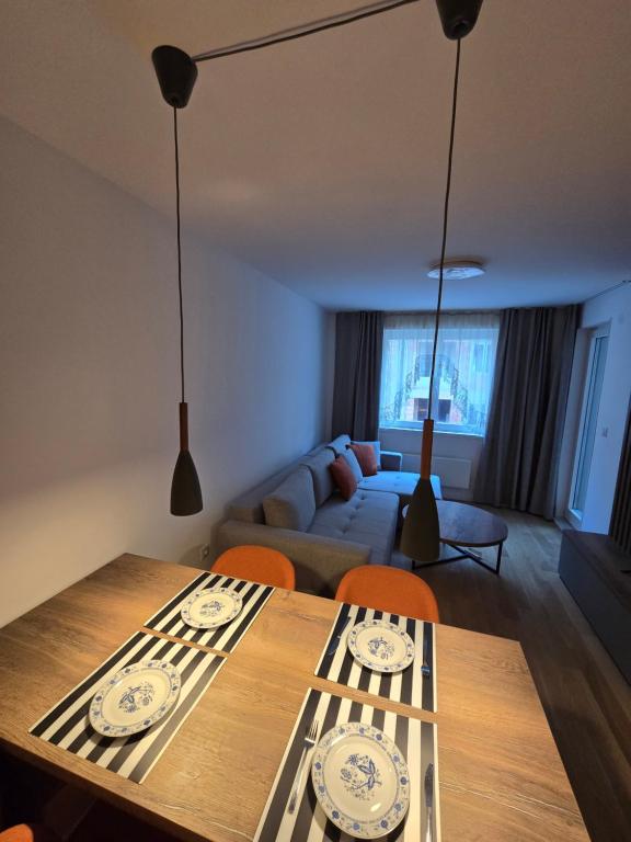 The distance from the center of Jahorina to the apartment is around 900 m.