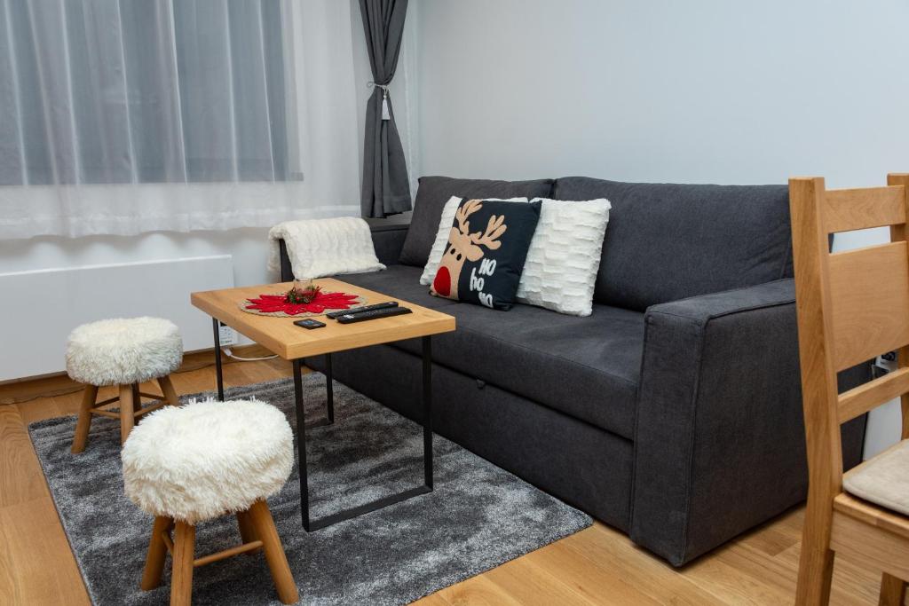 This apartment comes with 1 living room, 1 separate bedroom and 1 bathroom with a shower and free toiletries. Meals can be prepared in the kitchen, which features a stovetop, a refrigerator, kitchenware and a toaster. The apartment features a flat-screen TV with streaming services, soundproof walls, a tea and coffee maker, a dining area as well as mountain views. The unit has 3 beds.